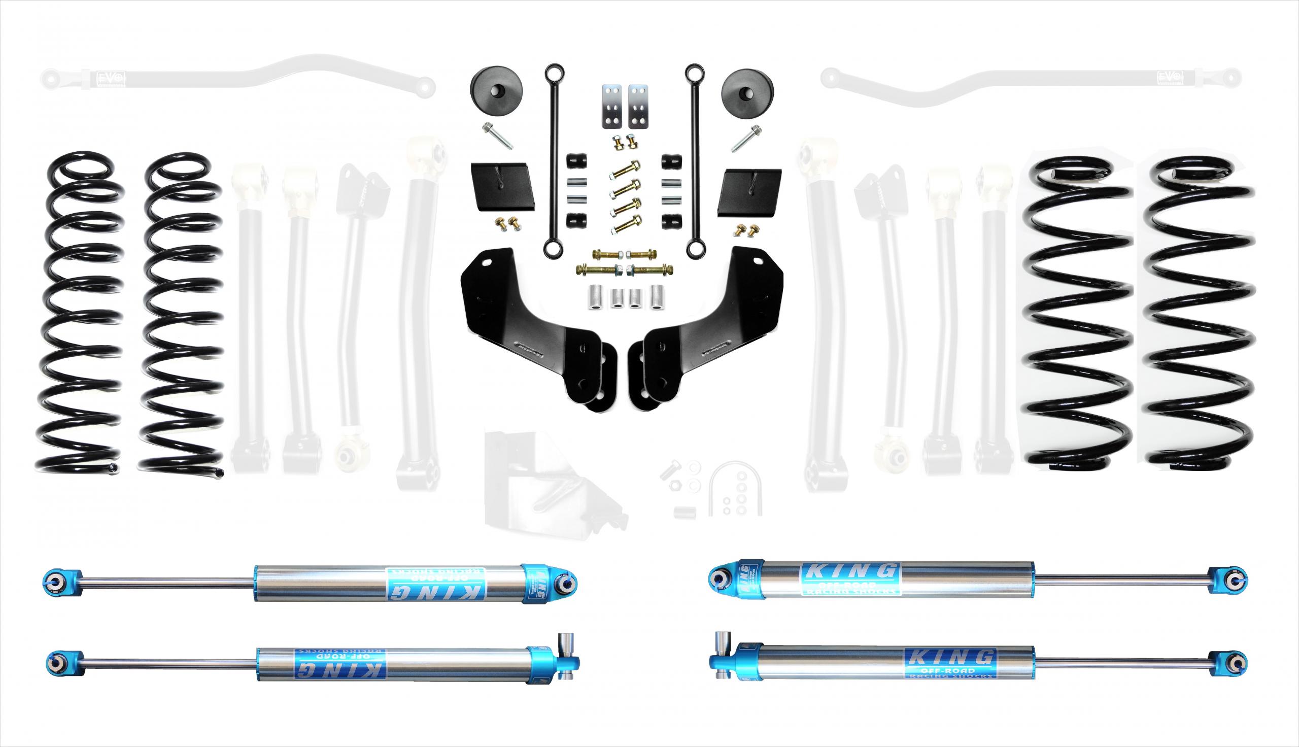 - Jeep Wrangler JL 2.5 Inch Enforcer Overland 4XE Lift Stage 1 with EVO SPEC King 2.0 Shocks with Adjusters