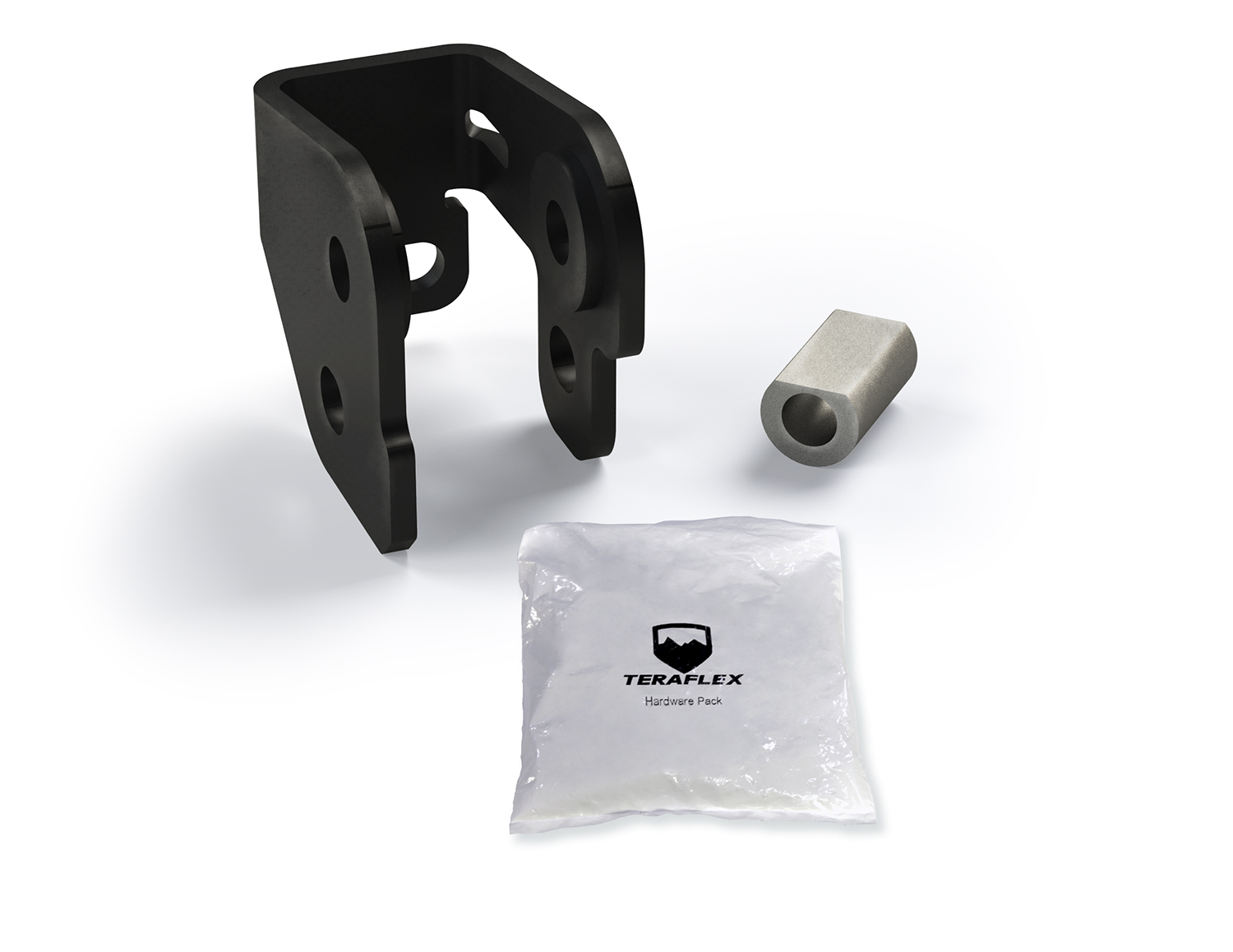 The TeraFlex JL / JT: Front Lower Track Bar Bracket Kit corrects steering geometry, eliminates bump steer, and other front-end issues on lifted JL Wrangler/Unlimited and JT Gladiator models.