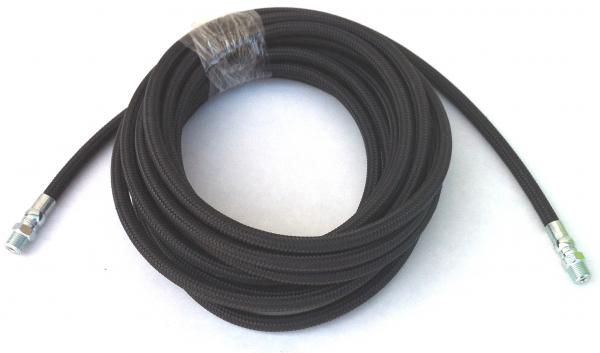 Air Tool Hose 20 Foot 1/8 MPT Ends from Power Tank. High Pressure Braided air line, 24 inch long, 1/8 inch MPT threads at both ends. Used on our SIG-5600 shock inflator and N2 Power Filler. 5000 PSI rated. Much softer and more flexible than steel braided.
