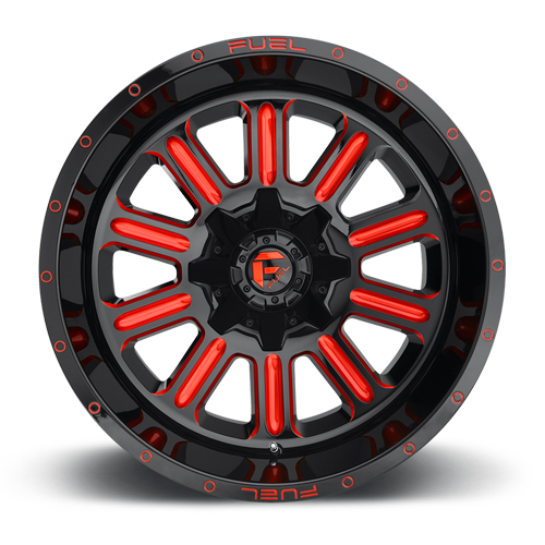 Bold Aesthetic Appeal: Featuring a striking gloss black finish complemented by a captivating red tint, the Hardline D621 wheels are designed to make a statement. This bold color scheme is not just about appearance; it reflects the adventurous soul of its owner.
