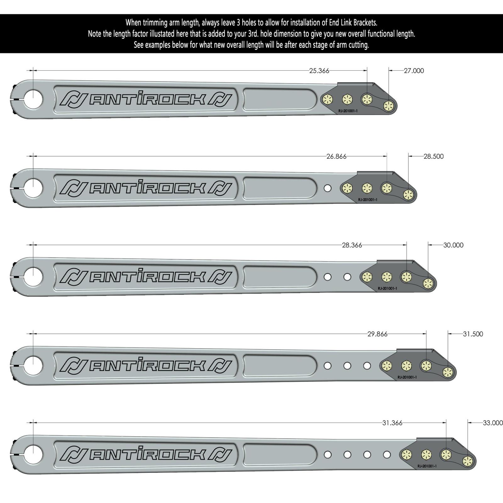 Arms are intended be used in conjunction with our 35 spline sway bars and our RJ-201001-101 Double Sheer End Link Bracket Kit and your custom sway bar end links.