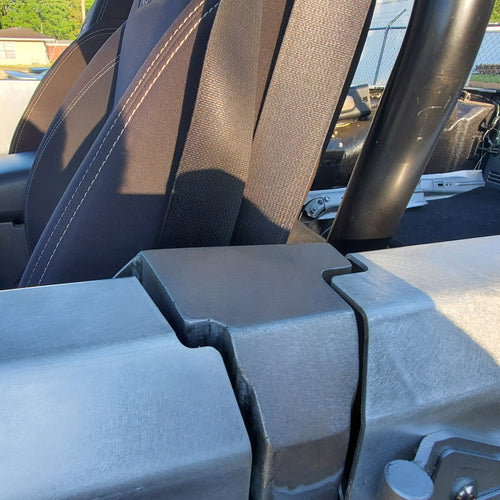 Do you have a custom full roll cage in your Jeep JKU? With a full cage install you can chop the B-Pillar for a clean look with the top and doors off. The Motobilt B-Pillar Chop kit for the JKU has an industry first cutting template laser cut from steel that is part of the kit. It lines up around the b-pillar to allow the installer to make the cut line with a very precise template.