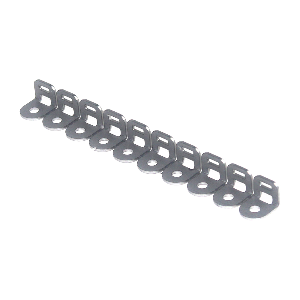 The tabs are 0.75 inch Wide x 0.9375 inch Long x 0.6875 inch Tall. The material is 14 Gauge laser cut steel.