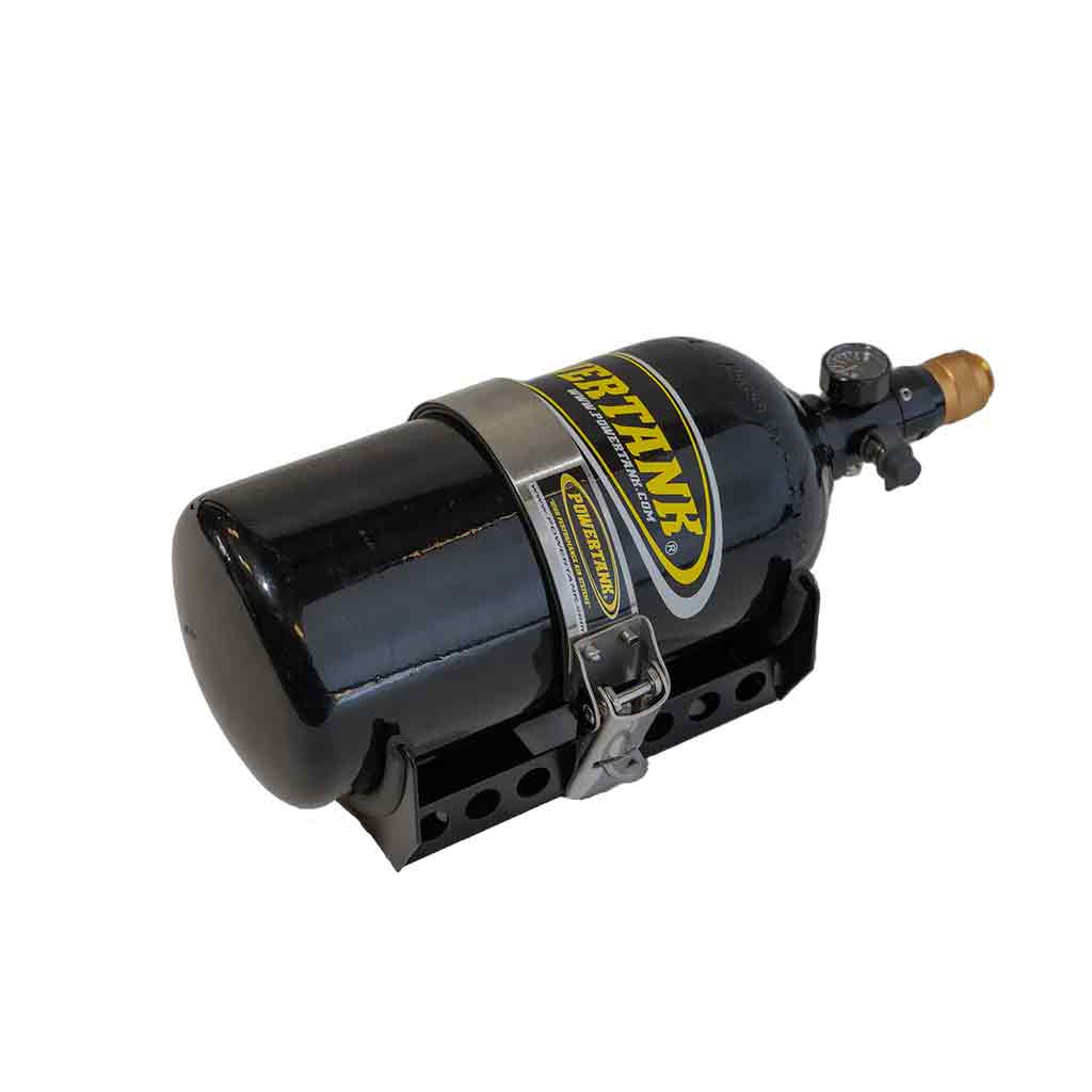 This bracket can be bolted to any flat surface. It is compatible with Power Tank round roll bar clamps to securely mount to any tube 1.5-2.5 inch diameter.