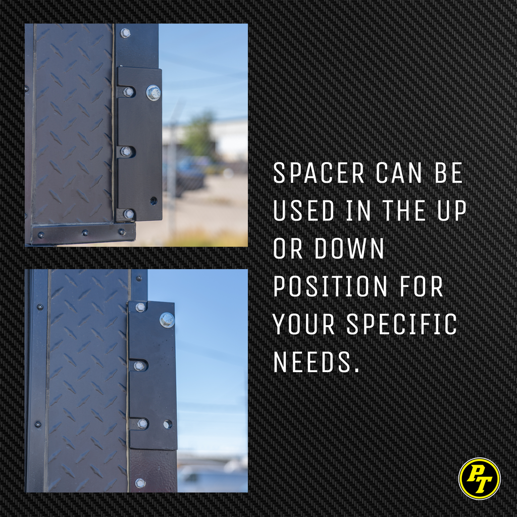 The Four Wheel Camper Spacer Mount gives you a quick exterior mount for a 5 lb Power Tank Super Bracket or a 5 lb Propane Tank Bracket. The spacer pushes the bracket away from the smaller exposed bolt heads and re-uses the 3/8 bolts included with the camper's corner jack mounts.