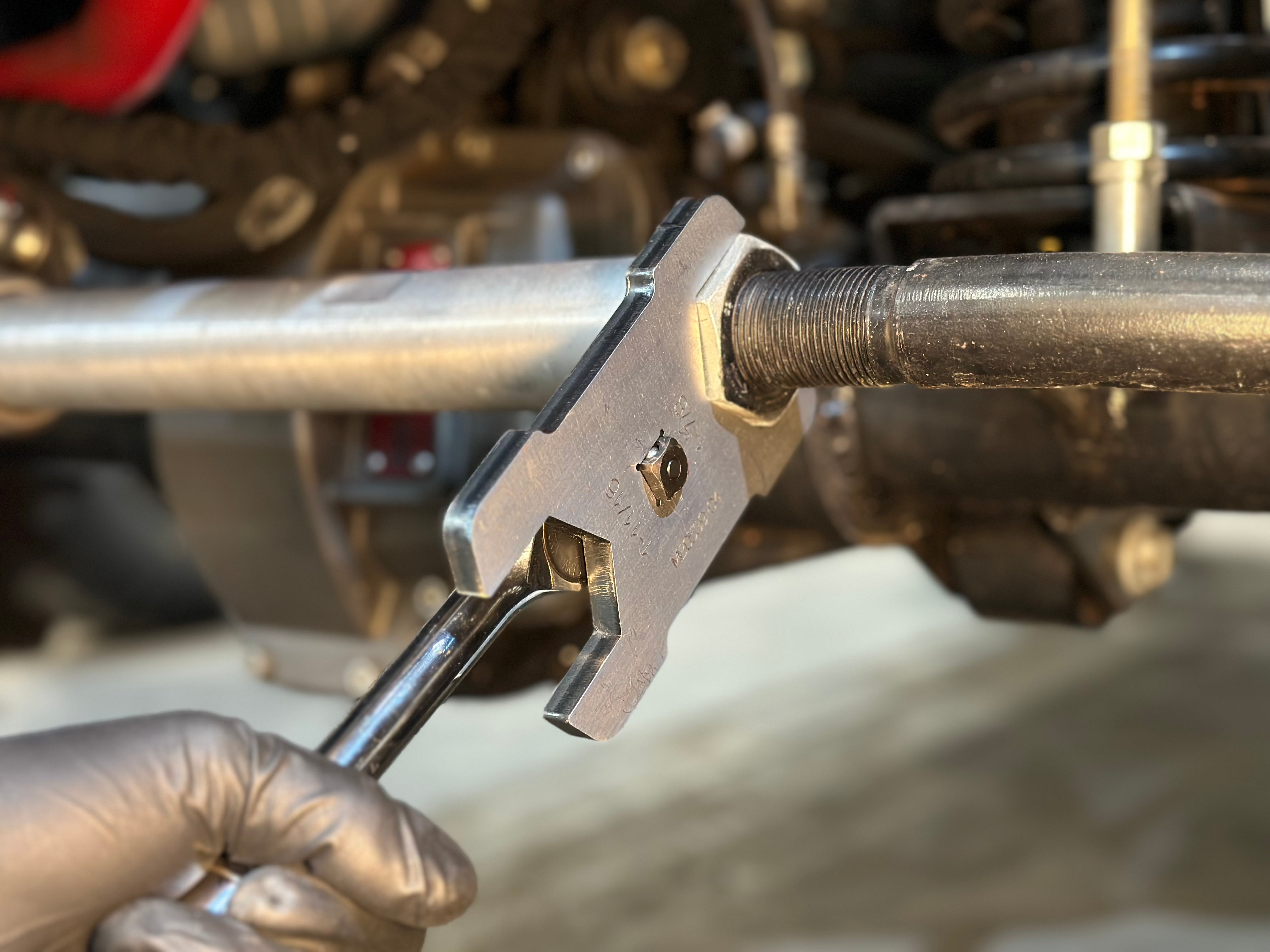 Like you, we have needed to tighten jam nuts both in the shop and while out off-roading and sometimes scramble to find a large enough wrench. We designed and made a compact set of 10 jam nut wrench sizes consolidated down to 5 simple tools.