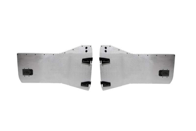 Doors and upper arm rests are made from 3/16 inch thick aluminum alloy. The EVO MFG manufactured door handle latches are made from Cold Rolled Steel, powdercoated black for corrosion resistance and a clean contrasting appearance.