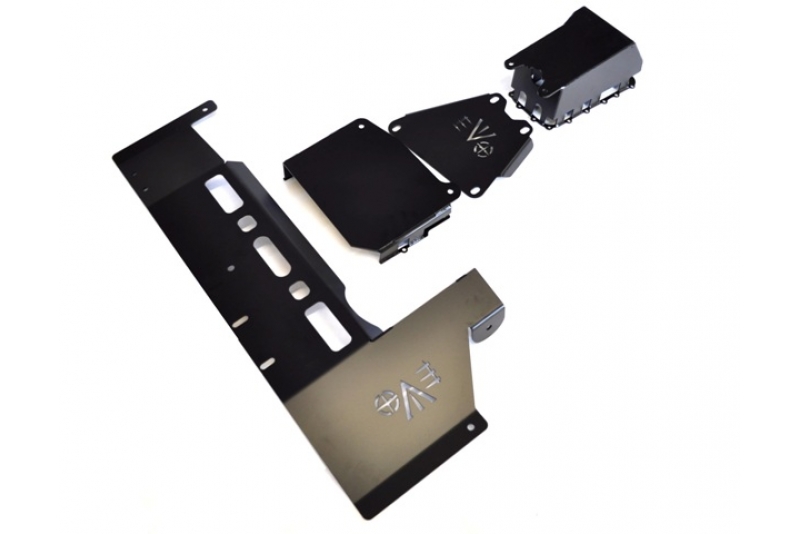 Package includes EVO-1101B EVO MFG 2007-2011 JK ProTek Oil Pan Skid 1/4 inch Steel skid fully boxed for protection on all sides, 100 percent Bolt on with Factory Hardware, Accessible oil drain without removing skid. EVO-1102B EVO MFG 2007-2011 JK 3.8L Transmission Skid (Auto) Black 100 percent Bolt on with factory hardware Powder coated black. EVO-1103B EVO MFG 2007-2011 JK 3.8L Skid Connection Black 3/16 inch Steel Skid 100 percent Bolt-on with supplied hardware Bridges gap between Oil Pan Skid and Auto Transmission Skid Powder coated black EVO-1093B EVO MFG TransCross-member Exhaust Skid.