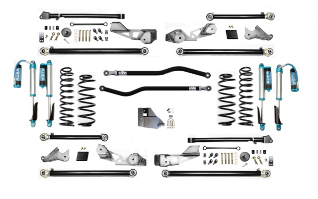 EVO3015K kits come with EVO SPEC King 2.5 Inch Remote Reservoir shocks all 4 corners. 3.5 Inch lift is based on increase of our 4 Door Rubicon. 4 Door Sport and Sahara Models will see slightly higher increases over stock and will match overall lift height of a Rubicon Model. 2 Door Models (all) will see slightly higher increases in lift. Increases will vary.
