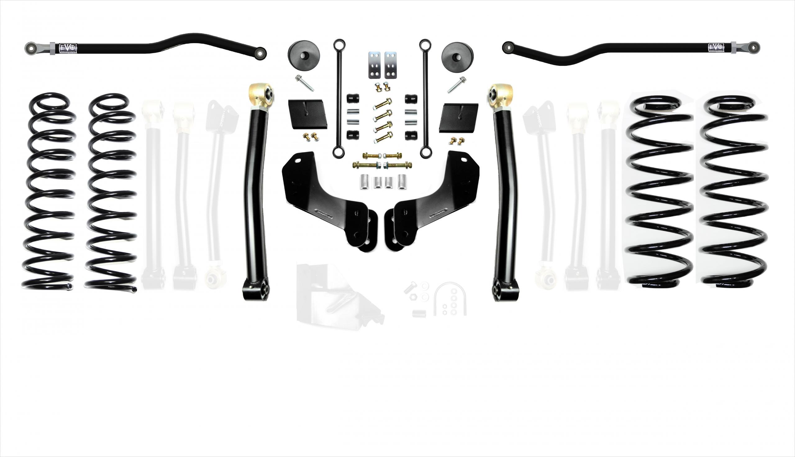 Stage 2 kits includes Stage 1 components as well as EVO MFG Enforcer JL Front Lower Adjustable Control Arms to allow for caster adjustments.