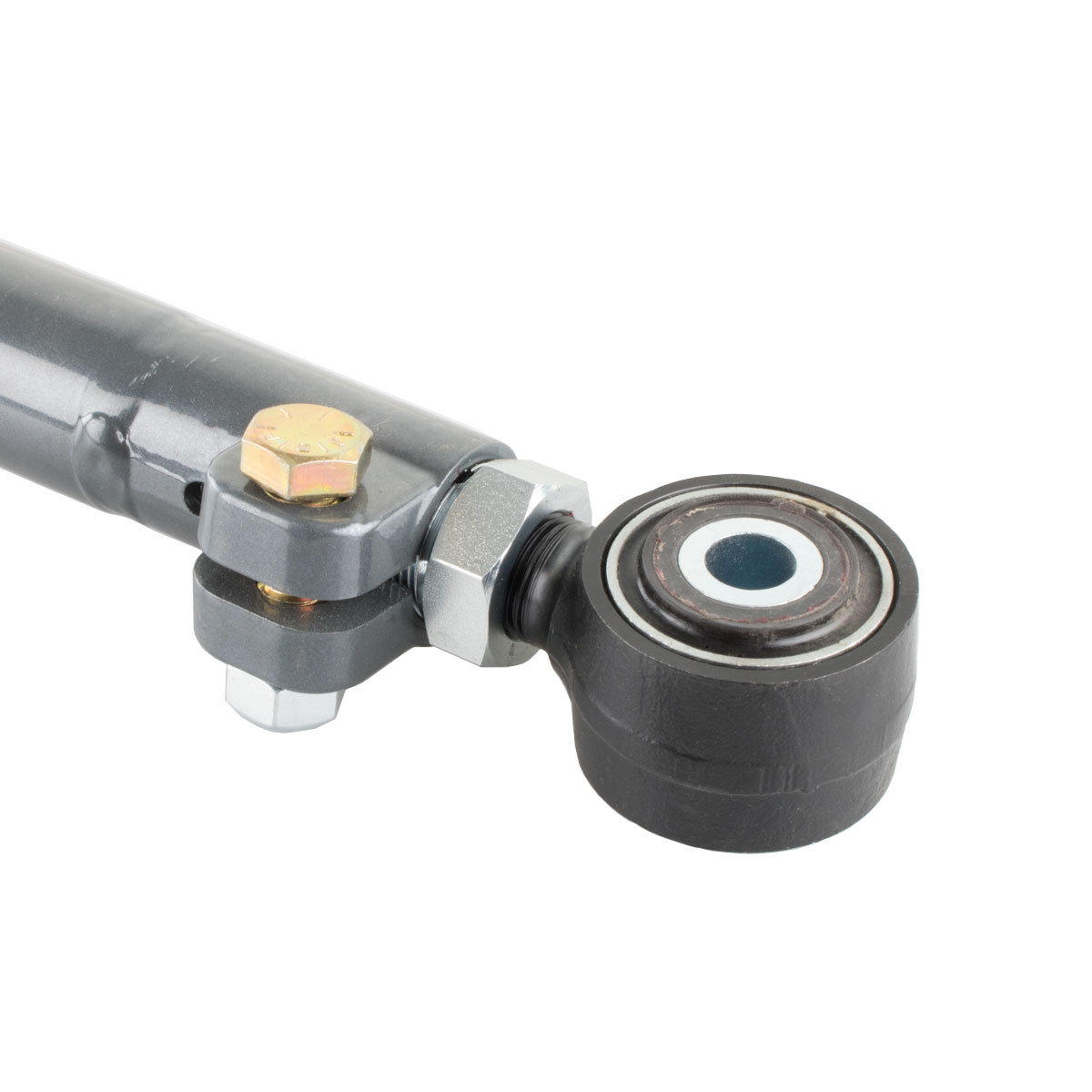 Jeep Wrangler JL Heavy Duty Adjustable Rear Track Bar. Adjustable track bars are used to help center your axles when running a suspension lift. Considerably stronger than stock to hold up to the abuse of large tires and aggressive off road driving. Length is adjustable on the vehicle to make adjustments a breeze. Uses maintenance free Synergy Dual Durometer Bushings on both ends. Bent to clear most aftermarket differential covers.
