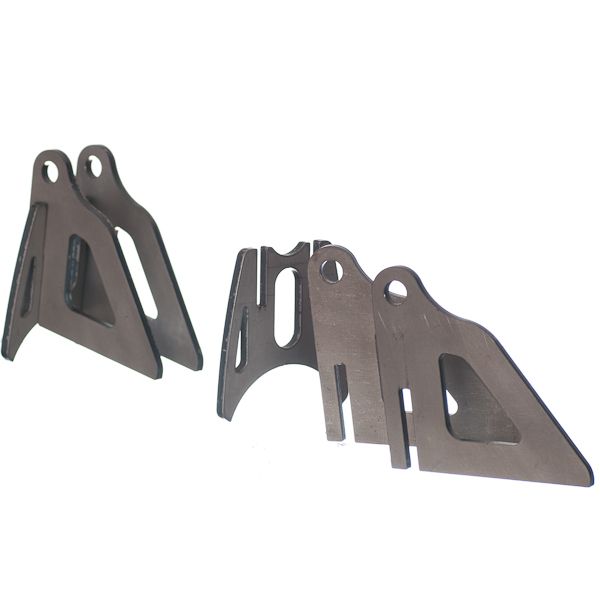 The Motobilt lower coilover bracket kit is designed for any axle with a tube diameter up to 3.5 inch. We laser cut the brackets in house at Motobilt HQ from 1/4 inch thick steel plate.. The mounting hole is 1/2 inch but can easily be drilled to a larger diameter. The over all height of the bracket front the top of the axle tube is just over 4.25 inch.