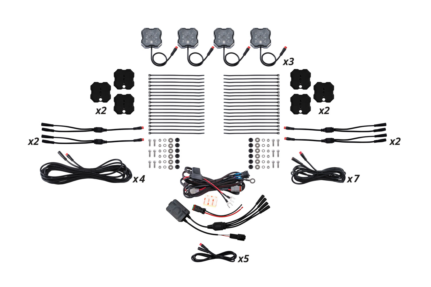 - Allows you to mount eight rock lights under your vehicle.