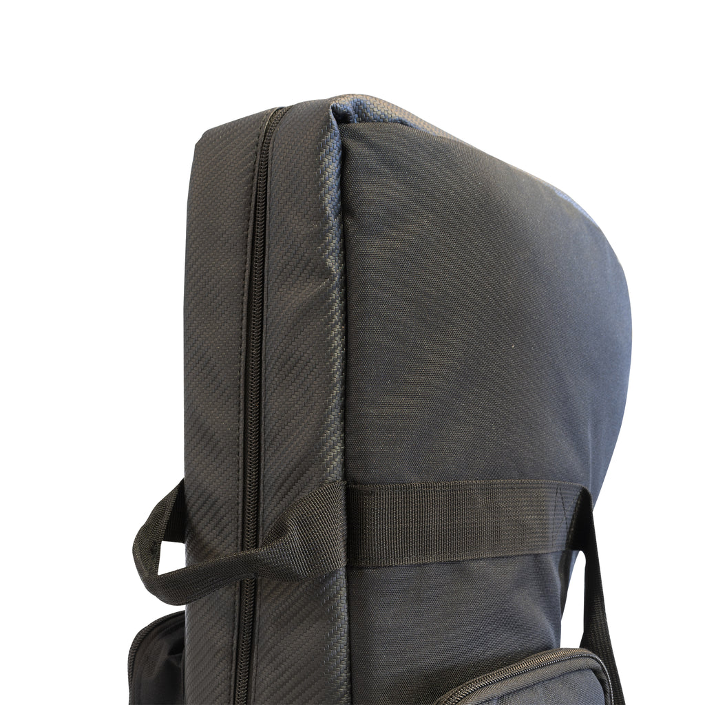 Unzip the top for full access to your regulator and valve and pull the hose out of the mesh pocket. Made of abrasion resistant ballistic nylon with an equally hardwearing carbon top cover, heavy duty nylon carry handles, and YKK zippers.