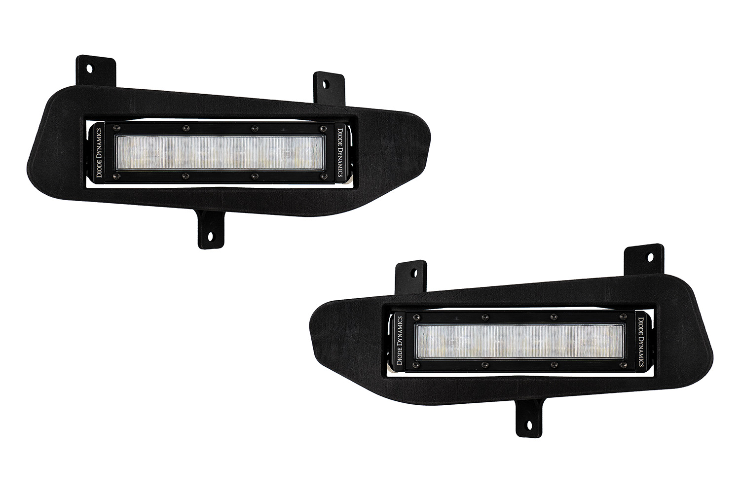 Perfect Fitment. The SS6 SAE LED Fog Light Kit from Diode Dynamics allows you to mount a pair of SS6 Stage Series 6 Light Bars in place of the factory fog light housings. No cutting or drilling required! This kit includes custom 3D printed brackets designed and produced by Foxbeam Lighting.