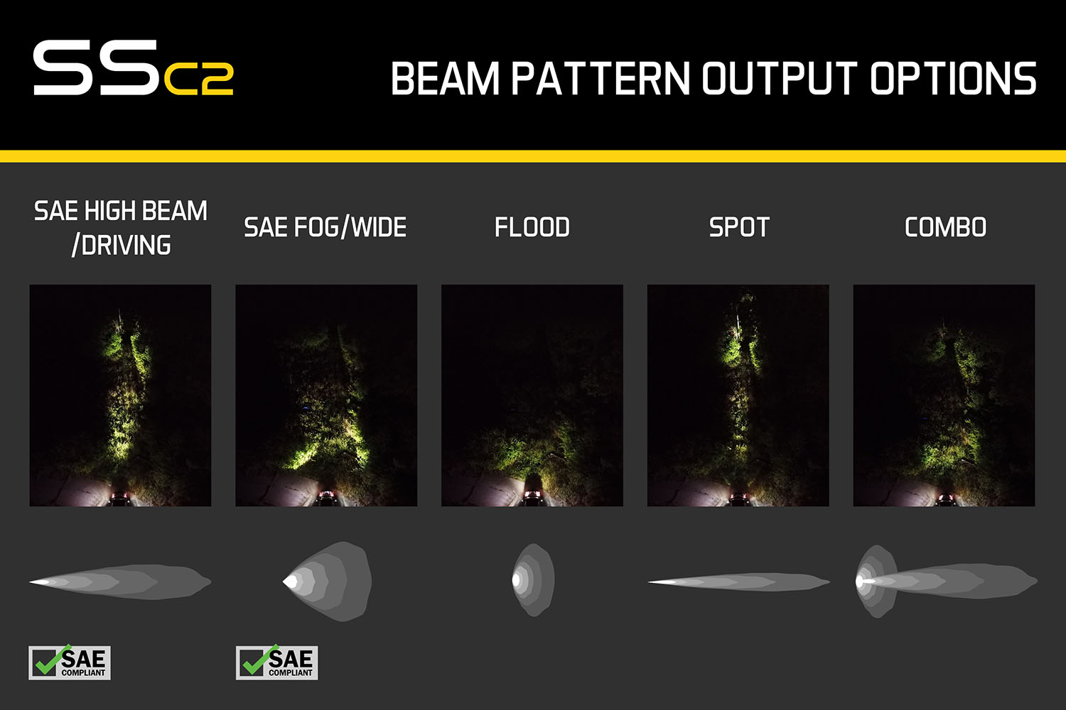 - SAE Driving is designed to supplement your high beams but it's great for general illumination as well. Rather than a traditional spot pattern the Stage Series Driving pattern shines in an 18x8 degree spread providing just enough width to fully illuminate the road ahead at high speeds.