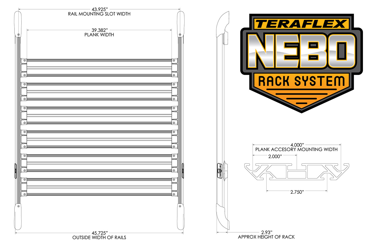 The purpose-built TeraFlex JK: Nebo Roof Rack System incorporates OEM aesthetics and styling with rugged performance to increase cargo carrying capacity for your adventures.