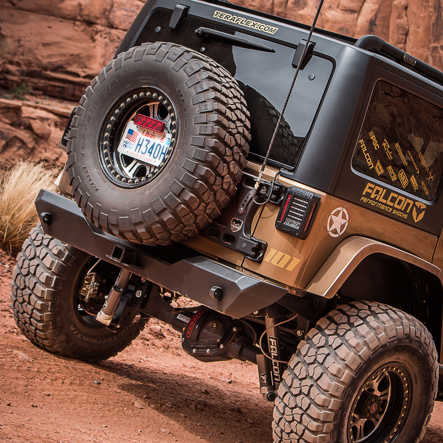 - JK Wrangler (2-door) w/ Alpha HD Hinged Spare Tire Carrier