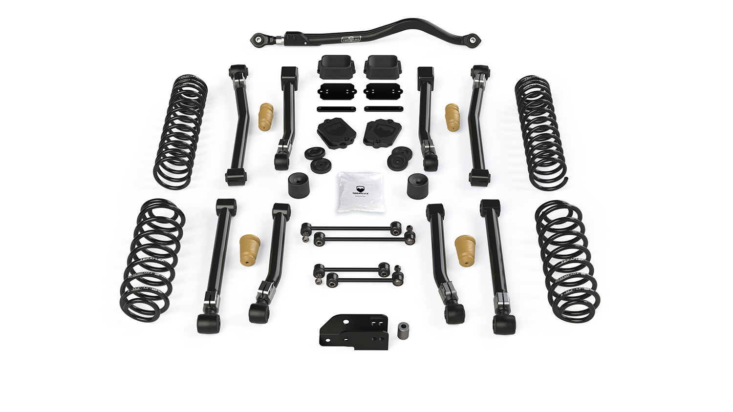 This results in improved suspension geometry and relaxed control arm angles for a superior ride quality and performance regardless of terrain. These systems restore front and rear roll axis angles to minimize brake dive and acceleration squat. TeraFlex suspension systems provide reduced noise, vibration, and harshness (NVH).