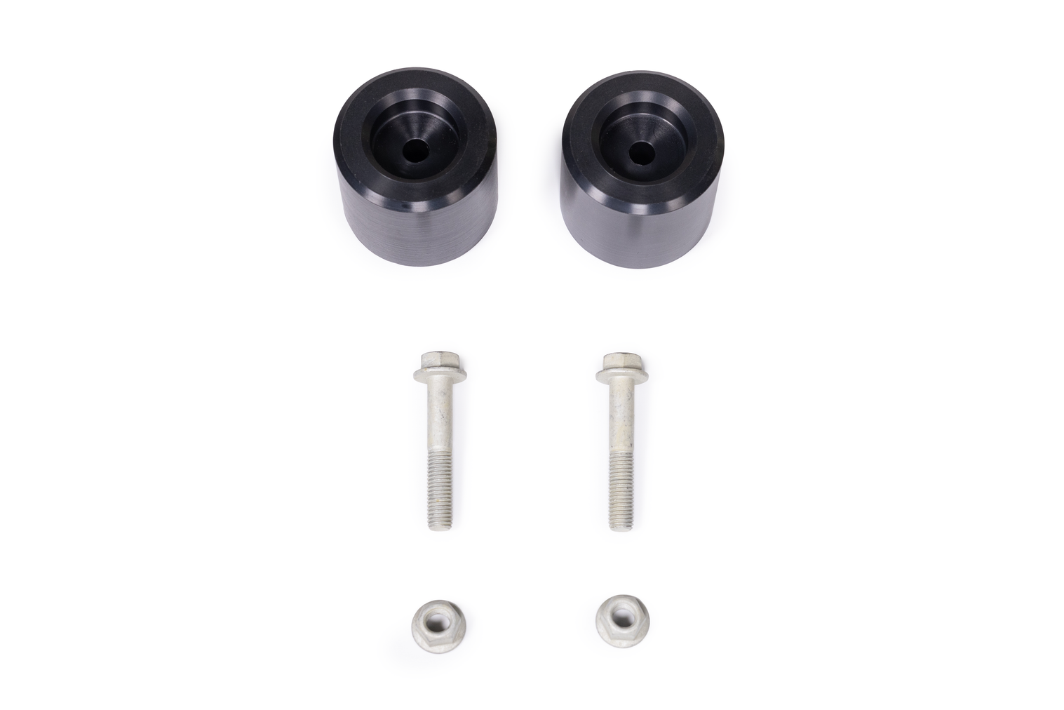RoMR 2.5 inch JL Wrangler/Gladiator JT Front Bump Stop Kit includes front bump stop extensions that allow you to bump your RoMR 2.5 inch JL Wrangler/Gladiator JT Suspension Systems properly, but will likely work for other suspension kits.