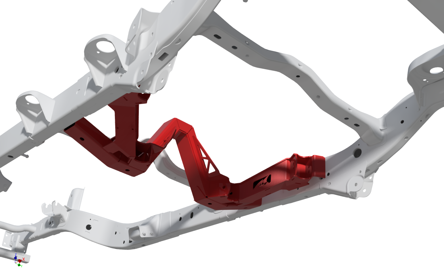 Rear brackets are designed to accept 2-5/8 Inch wide joints. All rear joint holes measure 5/8 Inch diameter, and can all be drilled to a larger diameter, if chosen. The rear brackets key into the new rear cross member & are scribed to fit perfectly to the inside of the factory frame. All brackets require welding to the factory frame.