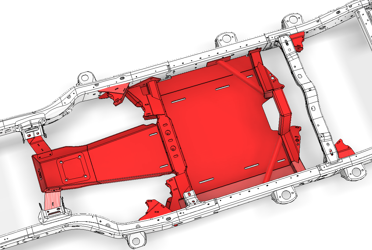 Also included is a new rear frame cross member which also acts as a skid mounting system and is an integral structural member to support the rear 4 link bracketry.