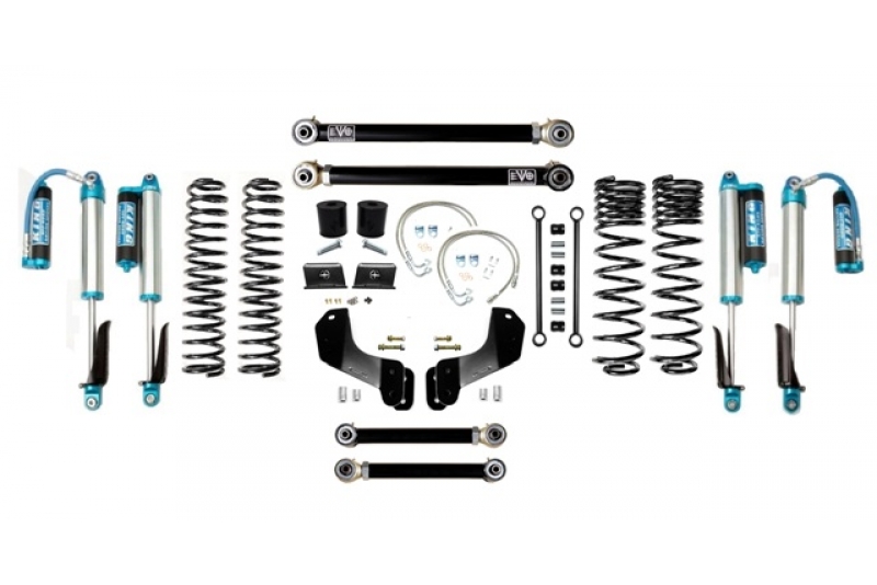 Stage 1 kits includes all the necessary parts to lift your JT 2.5 inches. Stage 2 kits includes Stage 1 components as well as EVO MFG Enforcer Front Lower Adjustable Control Arms to allow for caster adjustments. Stage 3 Kits includes stage 2 components as well as EVO MFG Enforcer rear upper adjustable control arms for rear pinion angle adjustment.