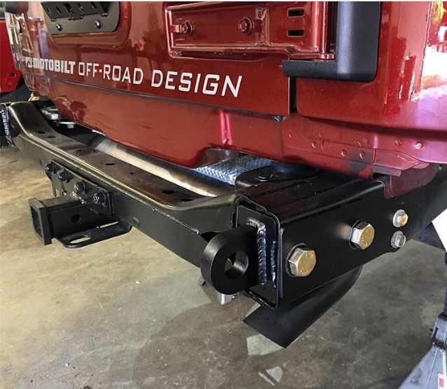 Motobilt offers the Jeep JK Rear Bolt on D- Ring Mounts. These are the ultimate in strength with a massive 3/4 inch thick high strength steel plate extending all the way into the frame rail on the rear of the Jeep JK and JK Unlimited. This is the perfect option for those not wanting to run a full rear bumper. Motobilt is in the business of building quality offroad products. The Jeep JK and JK Unlimited Rear Bolt in Shackle Mounts are an example of this. This shackle mount system is designed for those not wanting to run a rear bumper. The shackle mounts bolt into the rear of the frame rail. They do require trimming the frame rail off flush to the rear cross member. If you ever decide to mount a full bumper the trimming does not remove any vital material from the frame and will allow for change in the future if you decide.