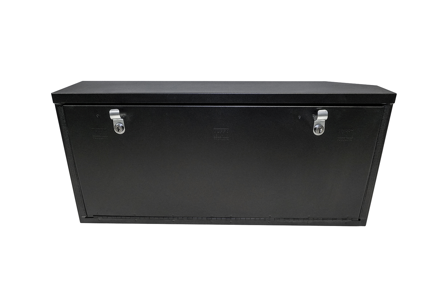 This heavy duty, high security lock box mounts on the inside of the Jeep Wrangler JK tailgate providing ample secure storage for tools and other gear. The door folds down creating a work table for cooking or quick sorting and access of your stuff. The Tailgate Lock Box comes equipped with 2 removable shelves for organization of smaller items. The entire Tuffy JK Tailgate Lock Box is constructed using welded 18-gauge steel, heavy duty fasteners and is covered with a durable textured powder coat finish. The JK Tailgate Lock Box installs to the JK Tailgate Rail mounts using standard hand tools with or without an OEM hardtop. Featuring Tuffy's Pry-Guard Locking System with a 10-tumbler double bitted security lock with built in weather seals.