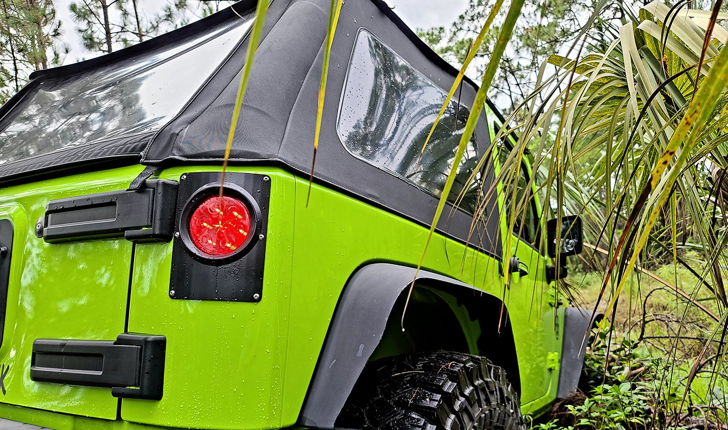 Factory Jeep JK or JKU tail lights are prone to trail damage due to the fact that they sit 3 Inch out from the body. This kit allows you install flush mounted round tail lights within the factory tail light opening, with minimal modifications.