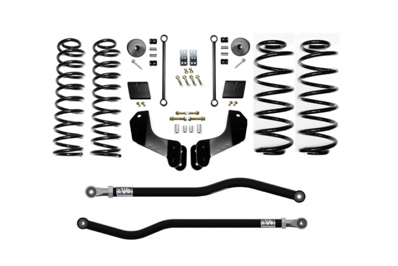 These kits come with a set of 2.5 Inch Plush Ride Lift springs specific to each corner which will keep the Jeep Wrangler JL Level side to side and will maintain a unique and compliant ride quality. EVO MFG JL Enforcer kits are available in multiple configurations to suit your needs and budget and are upgradable down the road. These Enforcer kits will fit up to a 37 inch tires on Rubicon Model JLs or 35 inch tires on Sahara and Sport/S What are the JL Enforcer Overland Systems, EVO-3012 Kits?