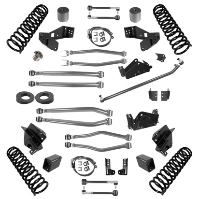 Synergy Jeep JK 3 Inch Lift Stage 4 Long Arm Suspension System is for those wanting maximum performance and capability without sacrificing ride quality. It carries over the quality components of the Stage 3 System, but improves upon them by swapping out the Standard Length Control Arms for Adjustable Long Arms and Long Arm Mounting Brackets. This is a 100 percent bolt on system with no welding required. This system will fit 35 inch tires with stock fenders or 37 inch tires with high fenders.