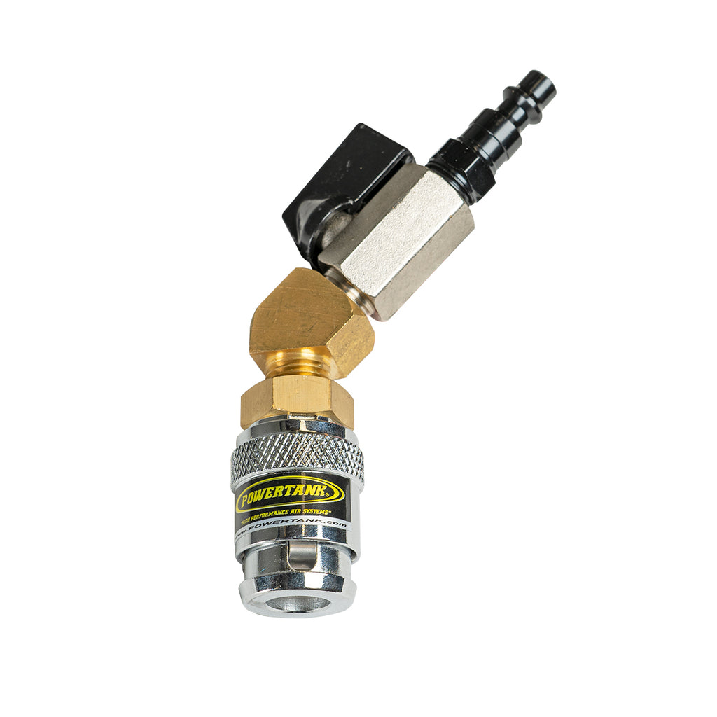 Monster Valve Air Chuck Power Tank. This chuck fits our large bore Monster Valves. The on/off ball valve gives you control at the valve and also shuts air off during chuck install for much easier push on and locking.