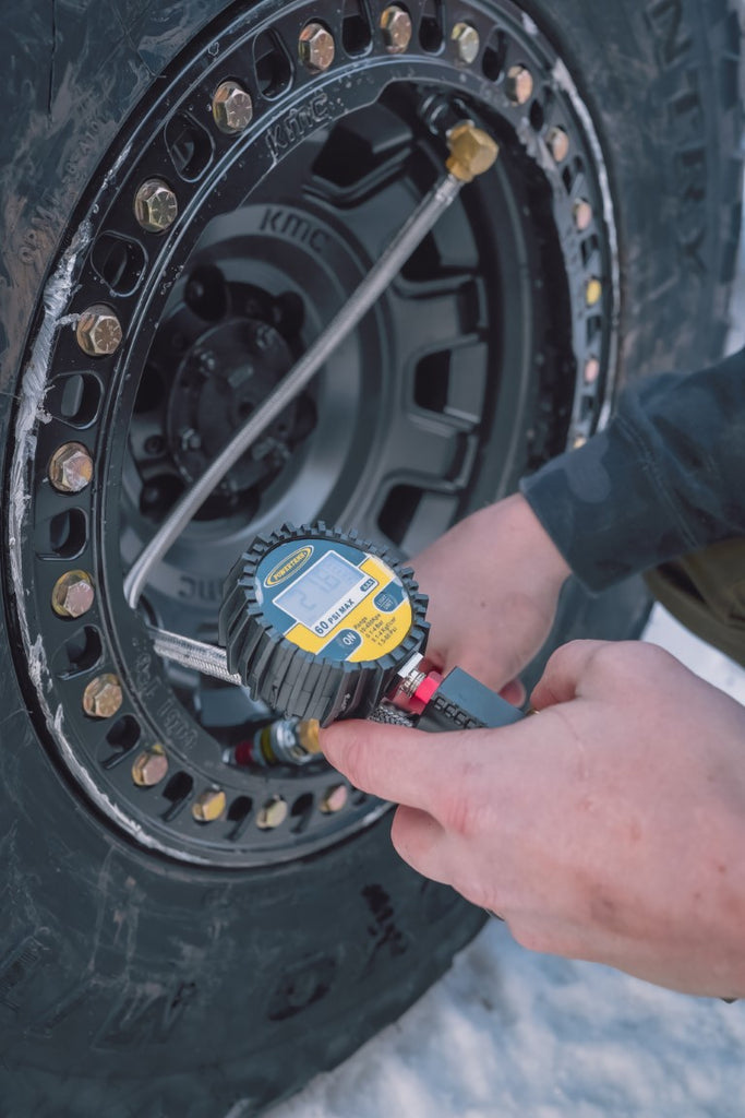The TPG RED is available in five gauge options and will come with a HiPPO2 Schrader tire chuck to attach to your Schrader valve stem to monitor second-to-second tire pressure as you air down with the Monster Valve and air up with the standard Monster Chuck attached directly to your air source.
