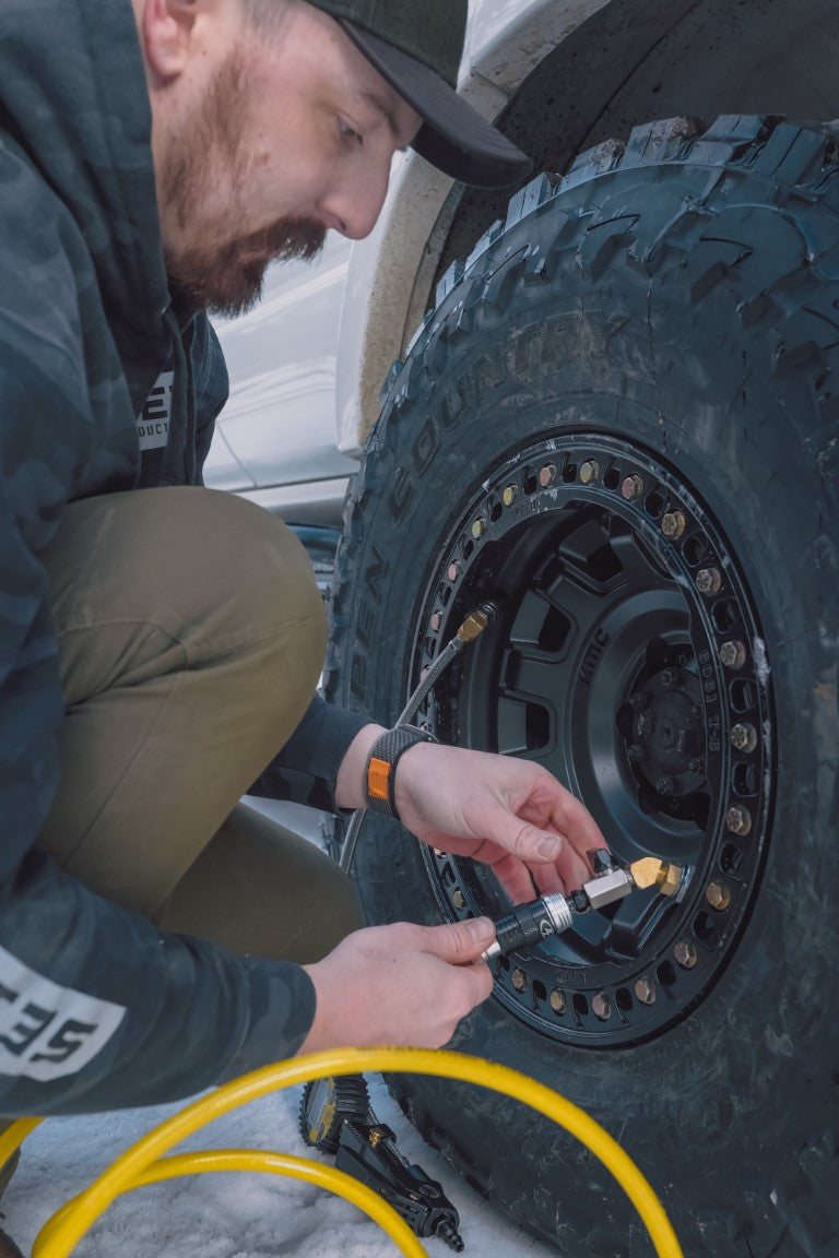 Imagine airing down a 40 Inch x 13.5 Inch x 17 Inch tire from 35 psi down to 10 psi in under 30 sec. This kit also includes a Monster Chuck which, when used with a Power Tank, will inflate that same tire in 40 sec.