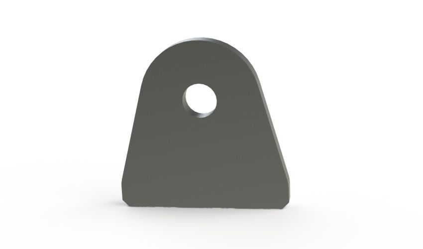 This tab can be used in many different applications. The hole diameter is 1/2 inch this allowing the tab to be used with shocks and poly bushings. By poly bushing we are referring to spring eye bushings used in leave spring applications. This is useful for mounting things like engines, transmissions, cross members, and more. The tab is CNC cut from high strength A36 steel plate. The tab measure 2.5 inch wide at the base. The hole measures 1.63 inch from the base to the center of the hole. The tabs are priced at per tab.