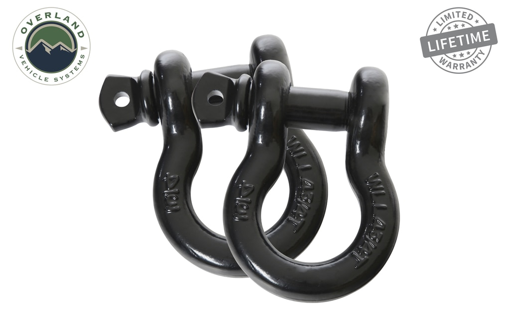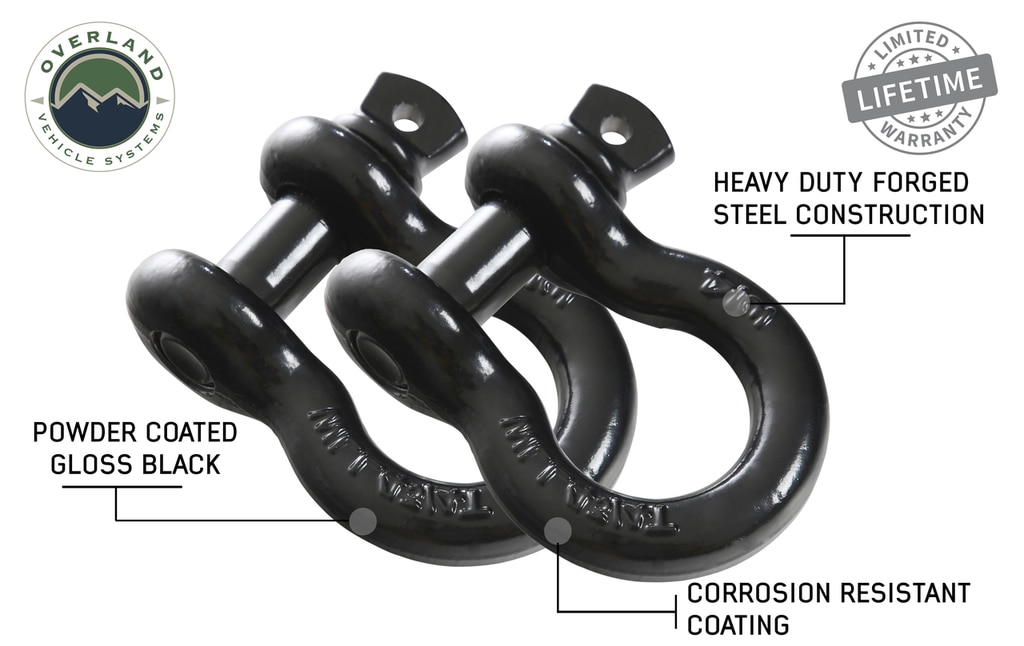 Overland Vehicle Systems D Ring Shackles 3/4 inch (2 Pack) 57,000 lbs. Break Strength with 7/8 inch Pin Heavy Duty D Ring Shackle For Recovery Off Road For Tow Strap, Bumper, Winch, Snatch Block and Towing Jeep Truck SUV RV