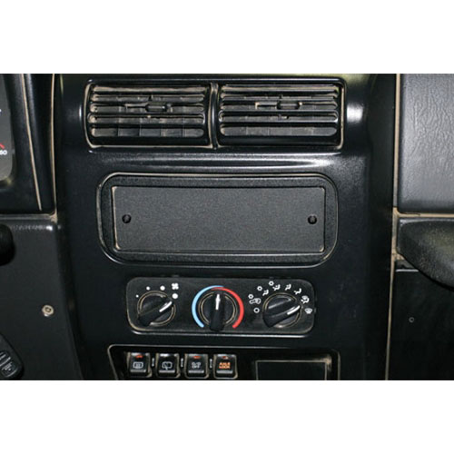 Cover the empty hole left in the dash after a stereo is removed with this cover. The plate can additionally be drilled for mounting switches. Lights, lockers, air, etc. Powder coated steel face plate and back tension plate. No drilling, just insert and tighten with the supplied fasteners.