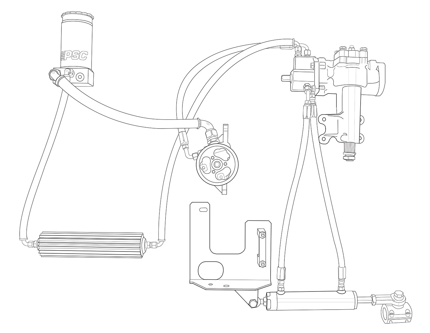 Improve the power steering system flow rate and reign in fluid temperatures with an upgraded 8 Return Line and PSC 16 Inch Heat SInk Fluid Cooler Kit. Install this kit in conjunction with the PSC HK2091 -8AN High Pressure Hose Assembly for maximum power steering system efficiency. PSC Heat Sink fluid coolers are manufactured with both internal and external cooling fins which provide maximum cooling efficiency without relying on direct airflow.