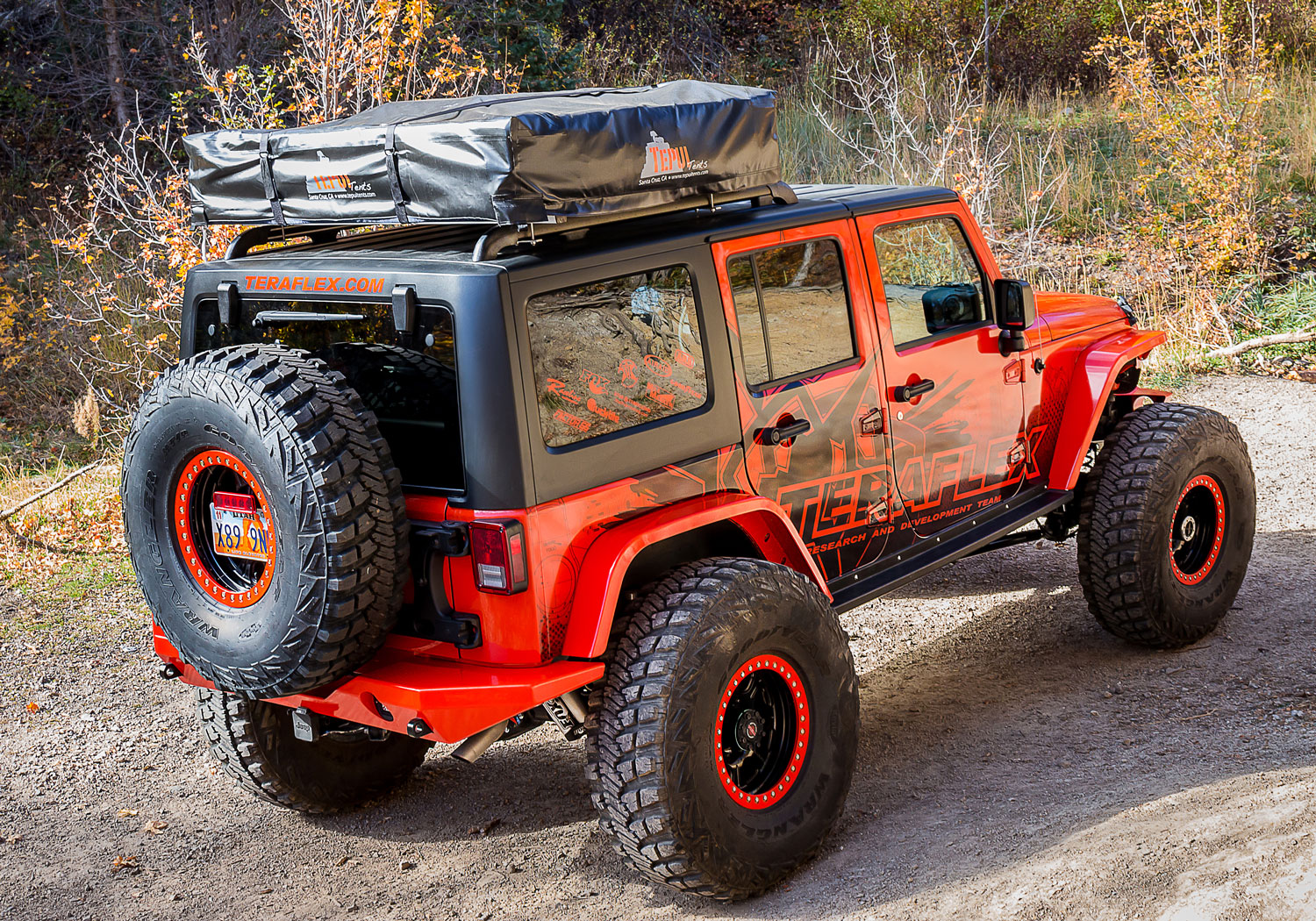 The TeraFlex JK: RockGuard Outback Rear Bumper complements the JK Wrangler/Unlimited models' body while offering ultimate rock protection as the 4,500+ pound SUV pushes over rocks and obstacles.