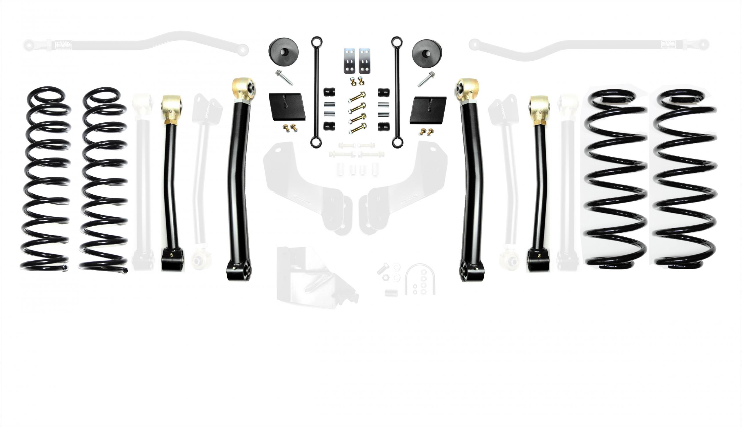 Stage 1 kits includes all the necessary parts to lift your JL 2.5 inchs. Stage 2 kits includes Stage 1 components as well as EVO MFG Enforcer JL Front Lower Adjustable Control Arms to allow for caster adjustments.