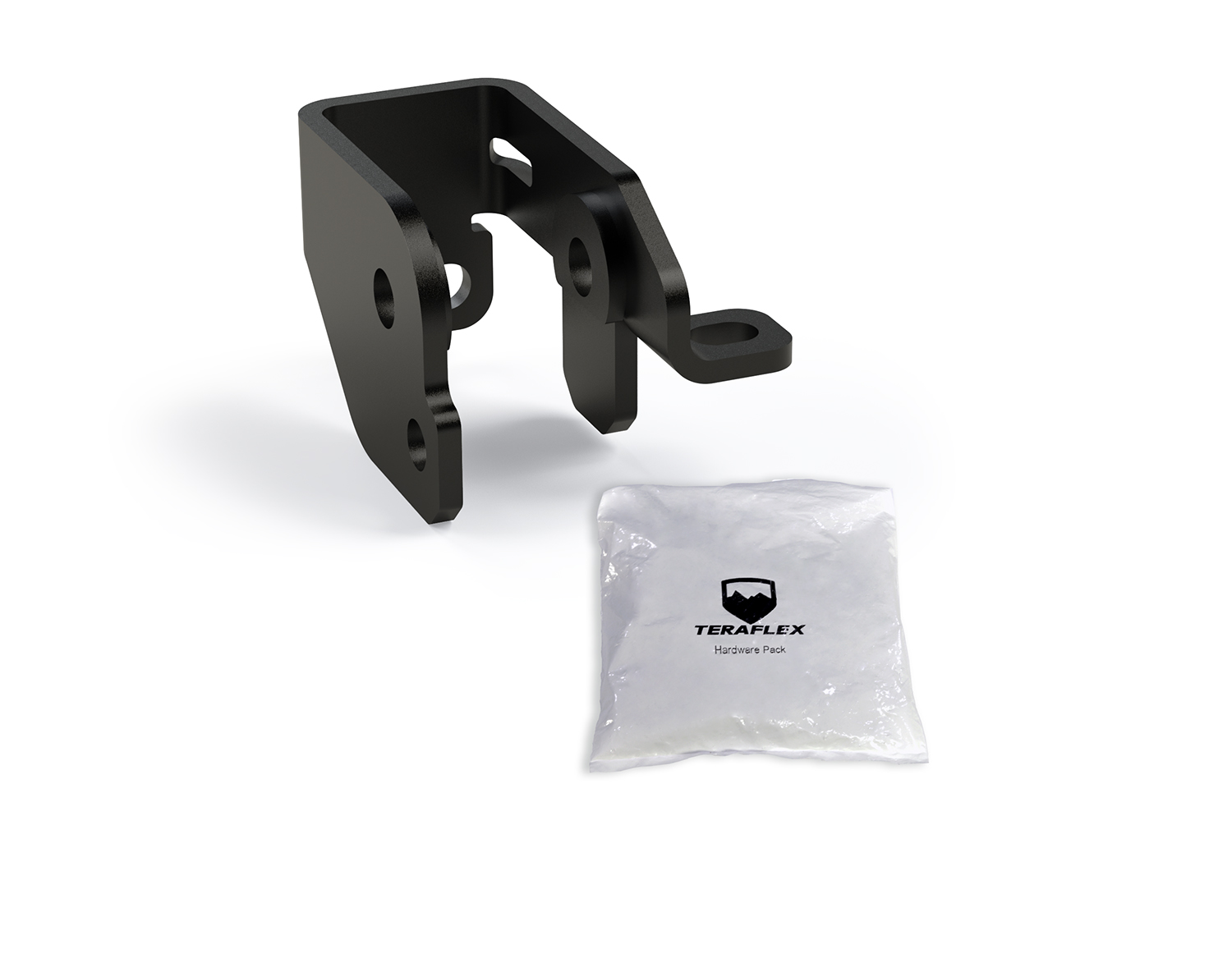 The TeraFlex JL / JT: Front Lower Track Bar Bracket Kit corrects steering geometry, eliminates bump steer, and other front-end issues on lifted JL Wrangler/Unlimited and JT Gladiator models.