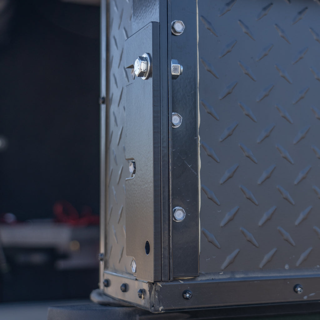 You can carry your Power Tank or propane bottle outside of your camper safely and securely. This mount is compatible with all 4 Wheel Camper models that DO NOT have the optional corner jacks. This mount can not be used in conjunction with corner jacks.