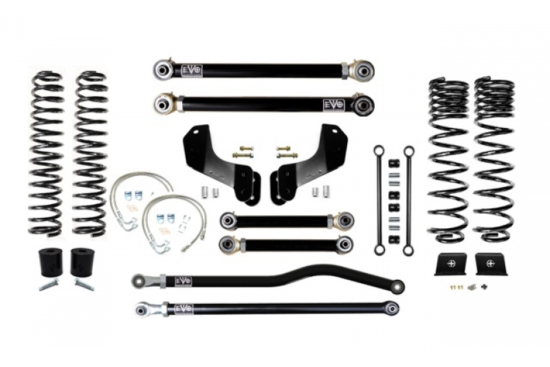 Stage 1 kits includes all the necessary parts to lift your JT 4.5 inches. Stage 2 kits includes Stage 1 components as well as EVO MFG Enforcer Front Lower Adjustable Control Arms to allow for caster adjustments. Stage 3 Kits includes stage 2 components as well as EVO MFG Enforcer rear upper adjustable control arms for rear pinion angle adjustment.