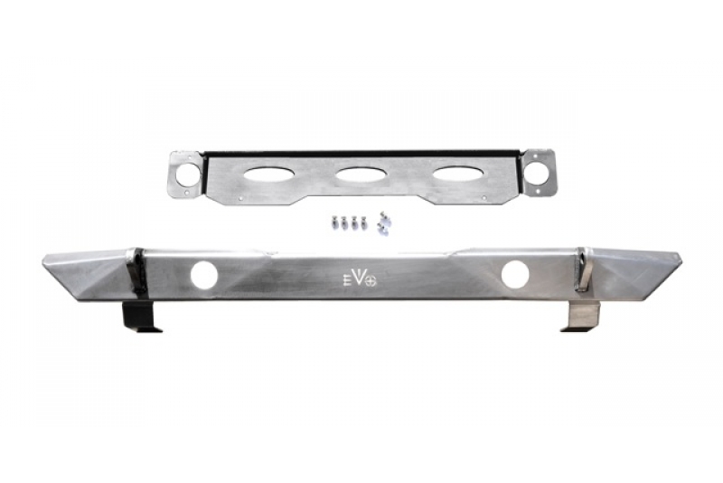 Notes: This product requires cutting of the frame, including permanent removal of the rear cross member and factory hitch receiver. This product will not work with the EVO MFG Rear Double Throwdown (EVO-1008). Round holes precut to appropriate size to fit 2 1/2 inch grommet LED lights.