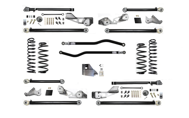 These kits come with a set of 4.5 Inch Plush Ride Lift springs specific to each corner which will keep the Jeep Wrangler JLU more level side to side and will maintain a unique and compliant ride quality. EVO MFG Long Arm joints feature Johnny Joints on both ends of the control arms for restriction free articulation and motion with no wearable and limited bond rubber. All long arms come complete with EVO1 on vehicle adjuster making alignment a snap allowing for the ability to adjust control arm lengths while completely installed on the vehicle at all times.