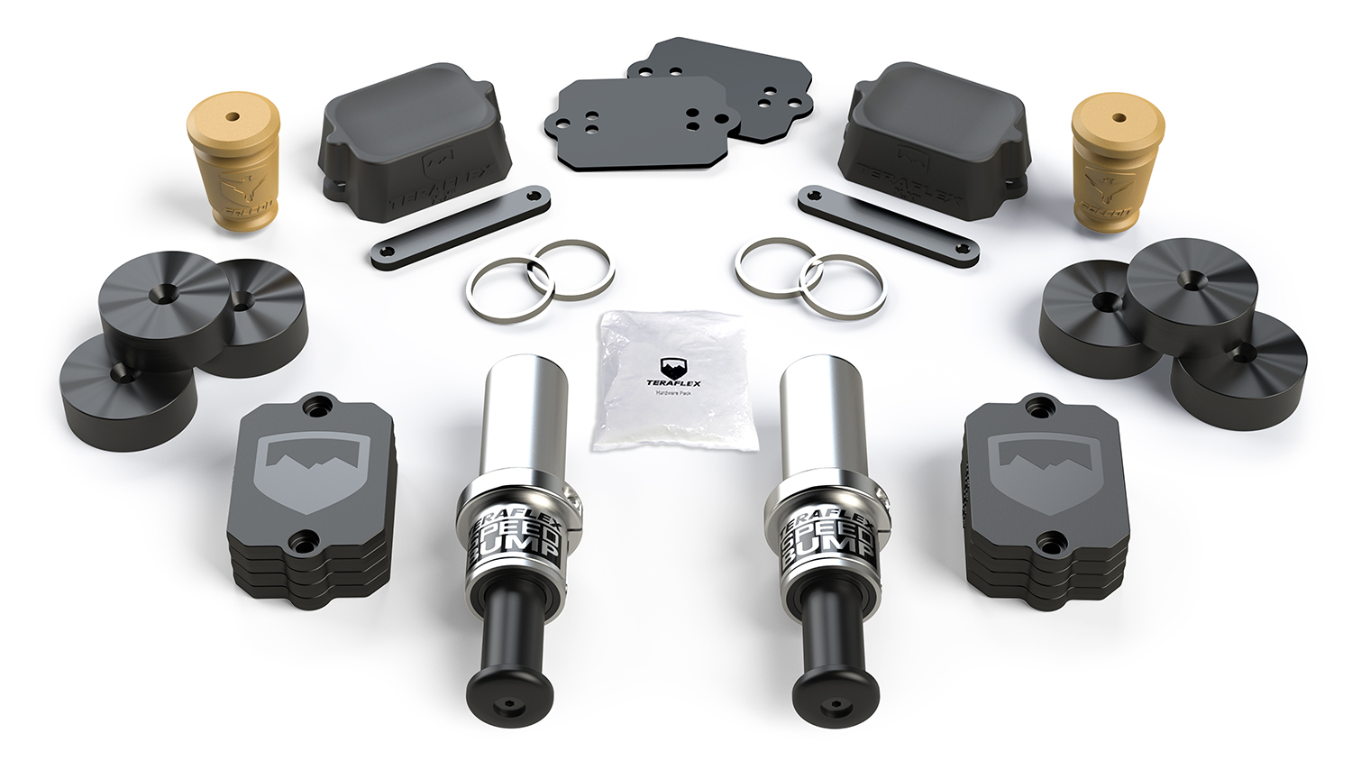 TeraFlex Bump Stop Kits add additional protection to your suspension over the factory bump stops, which can deform during hard compression and suspension movement.