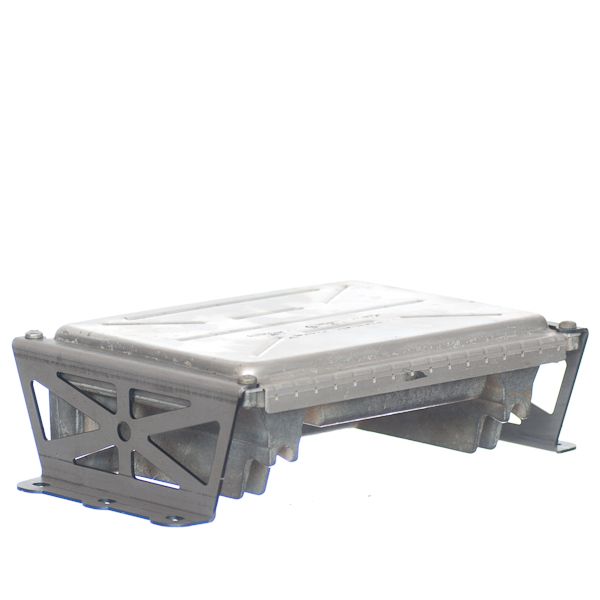 The Motobilt LS Engine ECM Mount is laser cut and formed out of 14 gauge steel. The LS Engine ECM Mount allows you to mount your ECM in universal locations. Mount comes in two pieces that are approximately 2.625 inch tall and approximately 5 inch wide at the bases. The outside bolt holes are approximately 4 inch apart from center point to center point, and has a bolt hole in the center. Ships bare metal with no hardware, because it reuses the factory screws in the ECM.