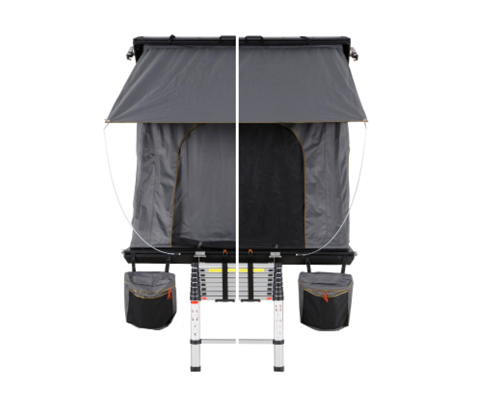 The Mamba III Roof Top Tent also comes with 1 Adjustable Interior Pop-Up Strut for additional support for when weight has been added to the cross bars. The Mamba III Roof Top Tent has a clean, rugged, durable, sleek and an aerodynamic design compared to traditional Roof Top Tents.