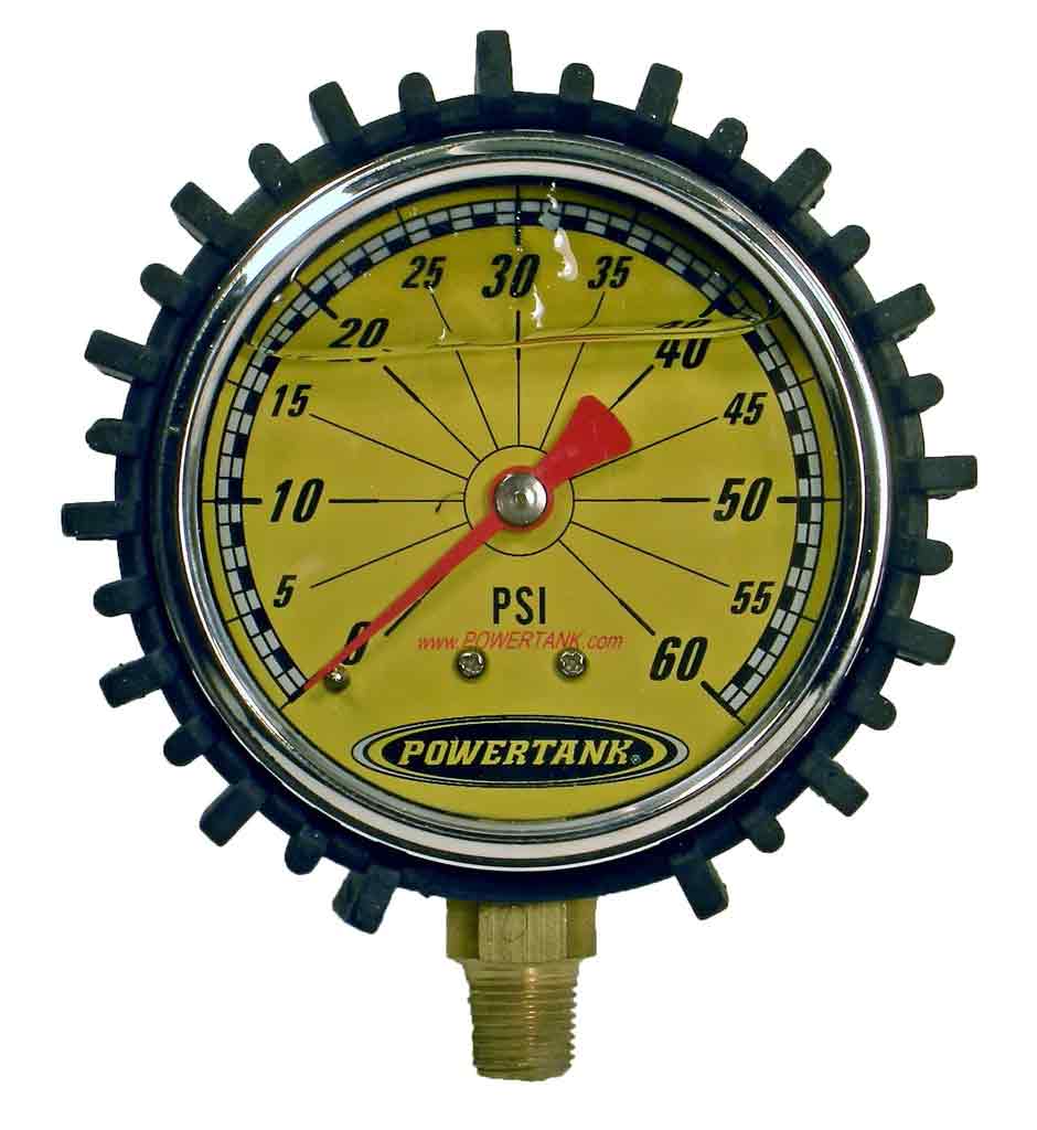 Tire Inflator Gauge Liquid Filled 2.5 Inch 0-60 PSI 1/8 Inch Lower Stem Includes Rubber Cover Power Tank